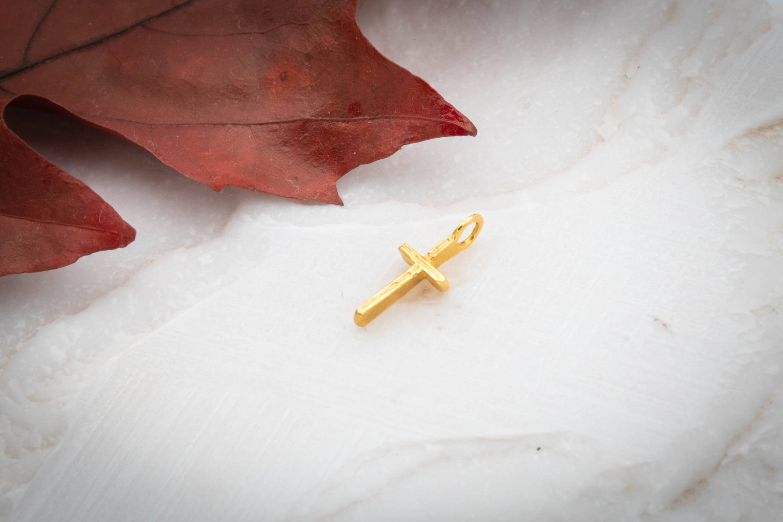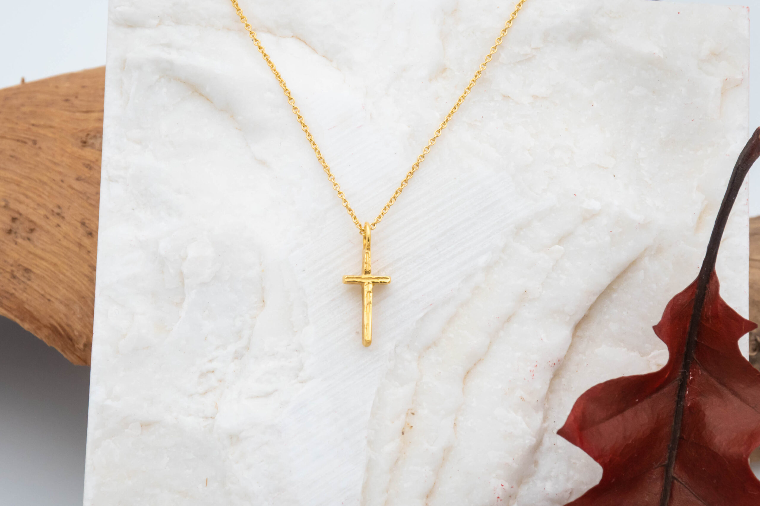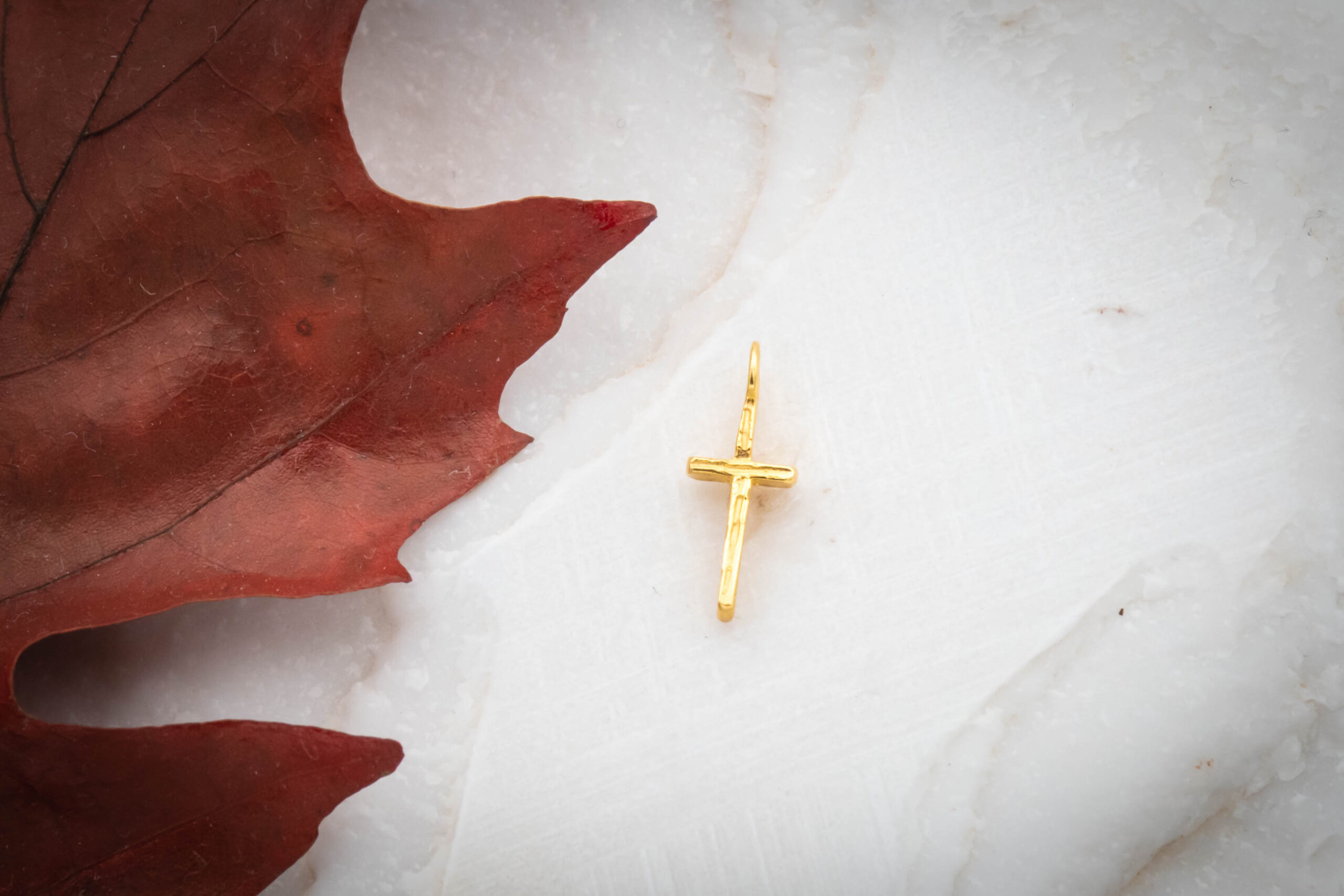 Μικρός σταυρός με ανάγλυφη επιφάνεια σε χρυσό Κ 14.