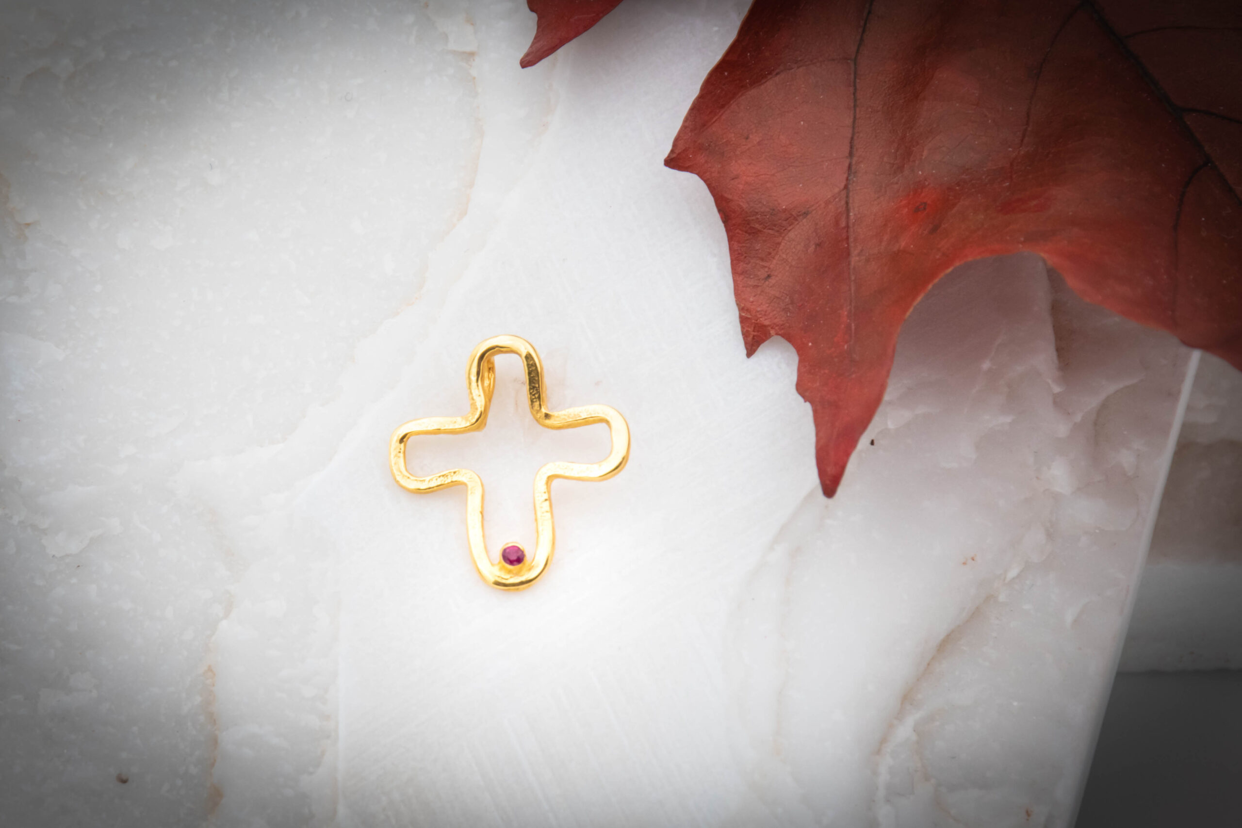 Σταυρός σε χρυσό Κ 14 με ρουμπίνι.